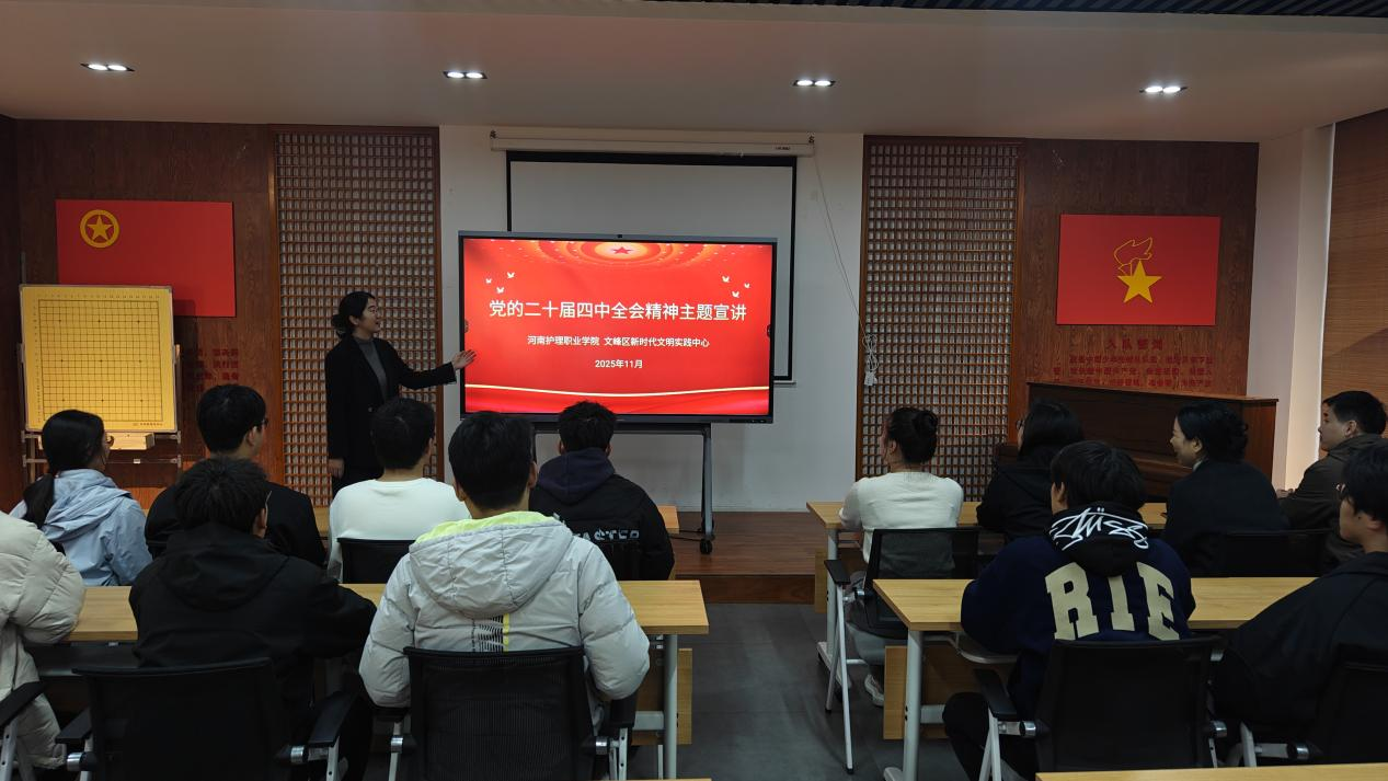为深入学习宣传贯彻党的二十届四中全会精神,推动新时代文明实践活动走深走实,11月3日,河南护理职业学院走进文峰区新时代文明实践中心开展党的二十届四中全会精神主题宣讲。